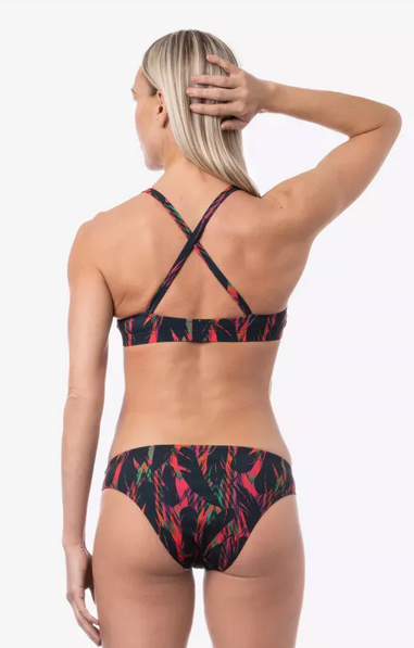 Très beau deux-pièces aux couleurs chaudes pour nager dans l’été…toute l’année.