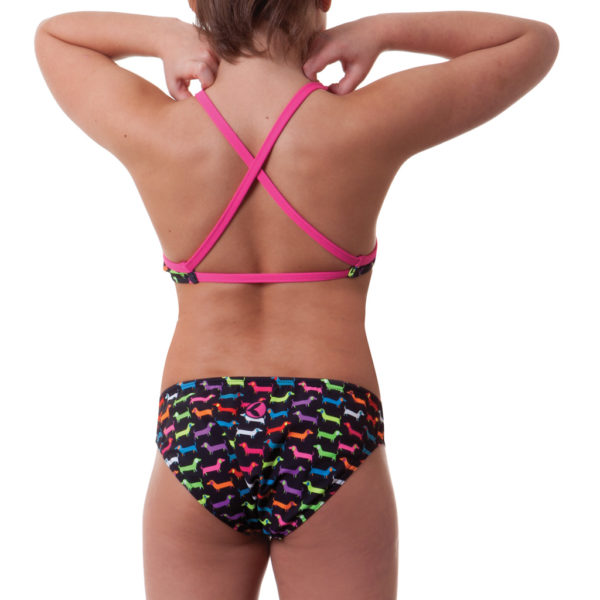 Top avec les bretelles fines qui croisent dans le dos. Slip avec lacet de serrage. Doublé.
